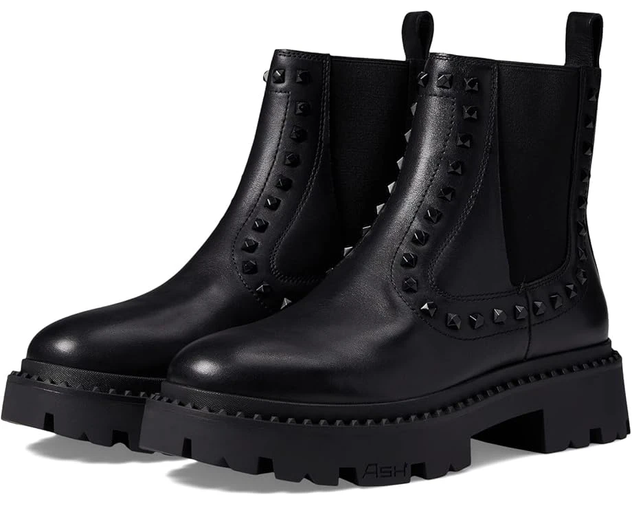 Amplify your transitional style this fall by putting on the super-stylish and comfy ASH™ Genesis Bis Boots.SKU: #9801288Leather and synthetic upper with embellished studs.Leather and synthetic lining.Leather insole.Pull-on style with elasticized side panels for a flexible fit.Pull tab on the back for easy on and off.Chunky heel.Synthetic outsole.Imported.Product measurements were taken using size EU 39 (US Women’s 9), width M. Please note that measurements may vary by size.Measurements: