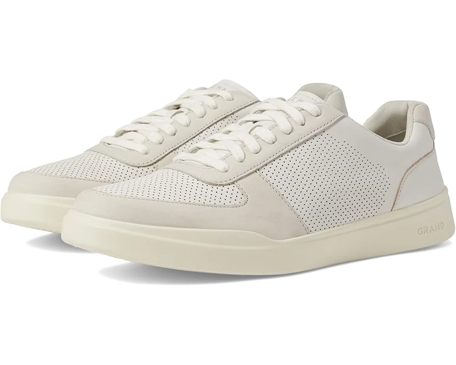 Cole Haanยฎ Grand Crosscourt Modern Perforated Sneaker.SKU: #9889368The sleek look of a dress show with the comfort and flexibility of a sneaker, these are a wardrobe must have to complete any casual look or semi- dressy ensemble. Lace up closure for easy adjustment and almond toe for style. Perforated toe cap and sides allow for a more breathable and wearable shoe. Logo stamped in outsole, across tongue and heel plate. Lace-up closure.Leather upper.Man-made lining, insole and outsole.Imported.Product measurements were taken using size 9, width D – Medium. Please note that measurements may vary by size.Measurements: