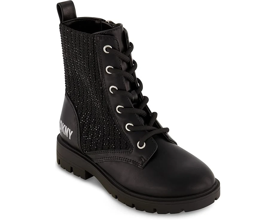 Add an extra element of flair to your junior’s attire by completing their look with the DKNY® Stassi Menia Boots.SKU: #9860202Faux leather upper with an embellished knit shaft.Breathable mesh lining.Padded EVA footbed for all-day comfort.Zippered side closure for easy on and off.Knit upper panel for a flexible fit.Round toe silhouette.Chunky block heel construction.High abrasion rubber outsole.Imported.Measurements: