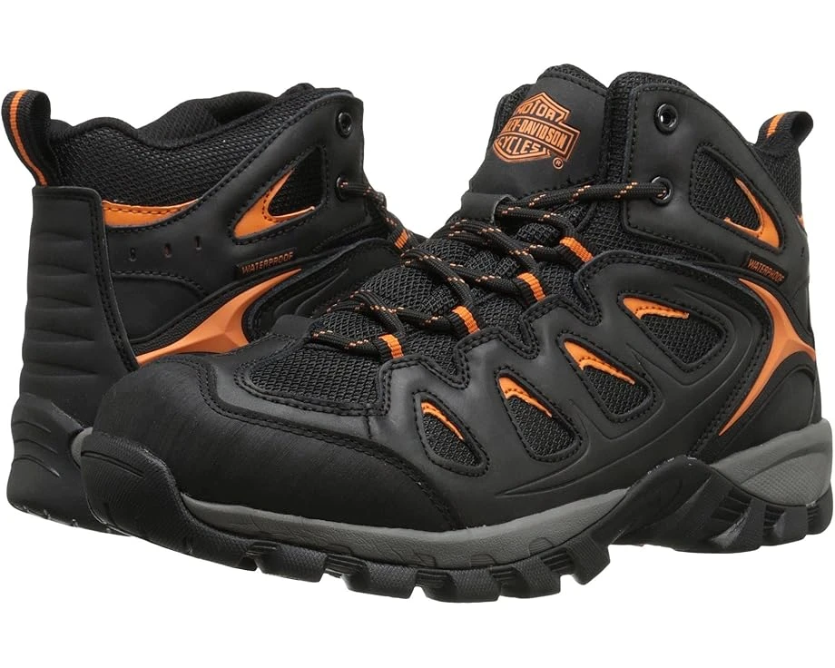 The Harley-Davidson® Woodridge hiker boot offers an athletic-inspired construction with excellent support and flexibility for all-day wear. SKU: #8655541Waterproof leather upper.Non-metallic hiker boot. Traditional lace-up style with fabric laces and durable webbing loops for a preferred fit. Lightweight cement construction provides flexibility and long-lasting wear. Breathable mesh lining for added interior comfort. Full-length cushion sock lining for underfoot support. Durable rubber outsole for reliable traction. Imported.Product measurements were taken using size 12, width D – Medium. Please note that measurements may vary by size.Weight of footwear is based on a single item, not a pair.Measurements: