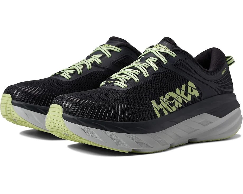 For information on how HOKA ONE ONE contributes to the community, please visit the About page.SKU: #9396373Keep moving and grooving in the well-cushioned Hoka One One® Bondi 7 running shoe. It features the most cushioned ride among HOKA’s road running line-up.Predecessor: Bondi 6. Support Type: Neutral to underpronation (supination).Cushioning: Maximum cushioning. Surface: Road. Differential: 4 mm.Open engineered mesh uppers with synthetic overlays offers maximum breathability and structural support. Lace-up closure. Heel pull loop.Padded tongue and collar. Comfortable fabric lining for a great in-shoe feel. Molded Ortholite® footbed.Internal heel counter provides a locked-in fit and support while a beveled heel offers a smooth transition.Early stage Meta-Rocker promotes propulsion.Full-length EVA midsole supplies high-performance cushioning. Imported. Product measurements were taken using size 8.5, width D – Medium. Please note that measurements may vary by size.Weight of footwear is based on a single item, not a pair.Measurements: