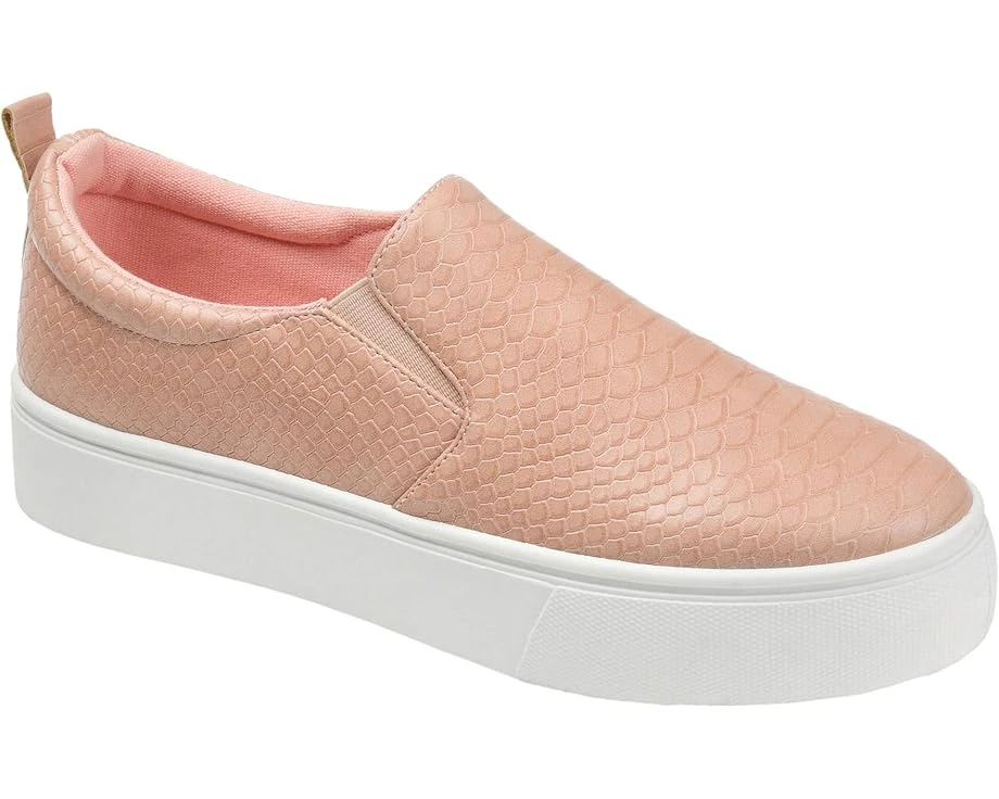 Embossed snakeskin inspired uppers add a street-chic attitude to this sporty slip-on sneaker. The Patrice by Journee Collection® is a vegan leather casual design resting on a clean platform sole. Dual elastic goring provides a flexible fit and a 4 mm Comfort Foam™ footbed provides a comfortable step.SKU: #9501619Round-toe silhouette. Rubber outsole. Imported.