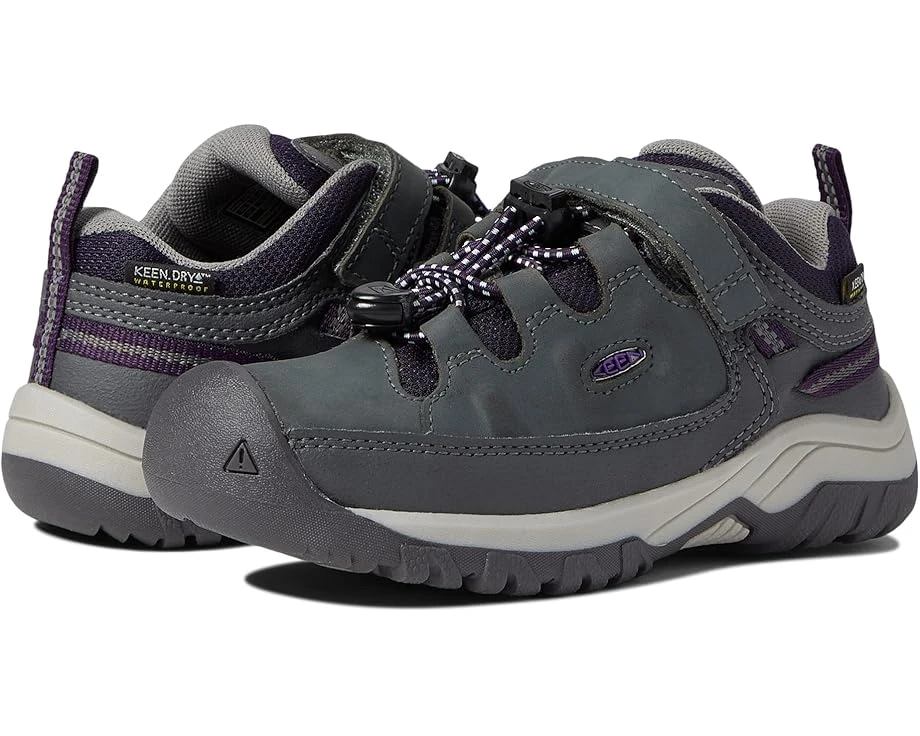 Hike from mountain-to-mountain with savvy gear by sporting the durable Keen® Kids Targhee Low WP Hiking shoe.SKU: #9058464Sturdy waterproof leather uppers keep wet elements out with KEENDry™ breathable membrane.Low-profile silhouette.Round-toe silhouette with protective toe bumper.Hook-and-loop top strap and secure quick-lace capture system. Cleansport NXT™ technology naturally controls unwanted odors.